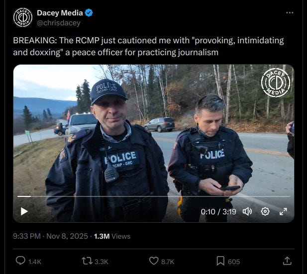 Addendum #2 (2025-11-15): Journalist Chris Dacey intimidated by RCMP for his reporting?